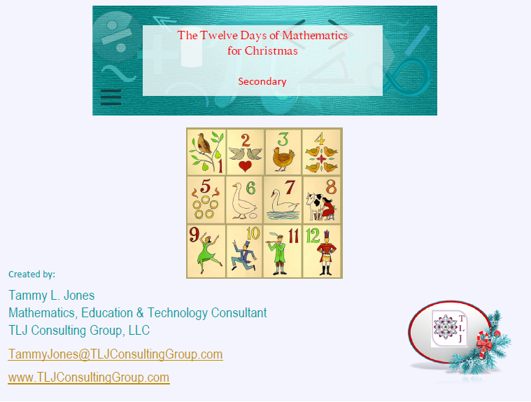 Tomorrow is December 1st. With my favorite holiday, Thanksgiving, just over, everyone is now turning their thoughts to Christmas, Hanukkah, and Kwanzaa. One of my grandsons’ favorite Christmas songs is the Twelve Days of Christmas. In honor of this song I am creating The Twelve Days of Mathematics for Christmas. There are activities for K-3. Intermediate – MS (grade 4 – grade 7), and Secondary (Grade 8 –Grade 12) and correlated to the number of the day. Check below for the links to the FREE resources.